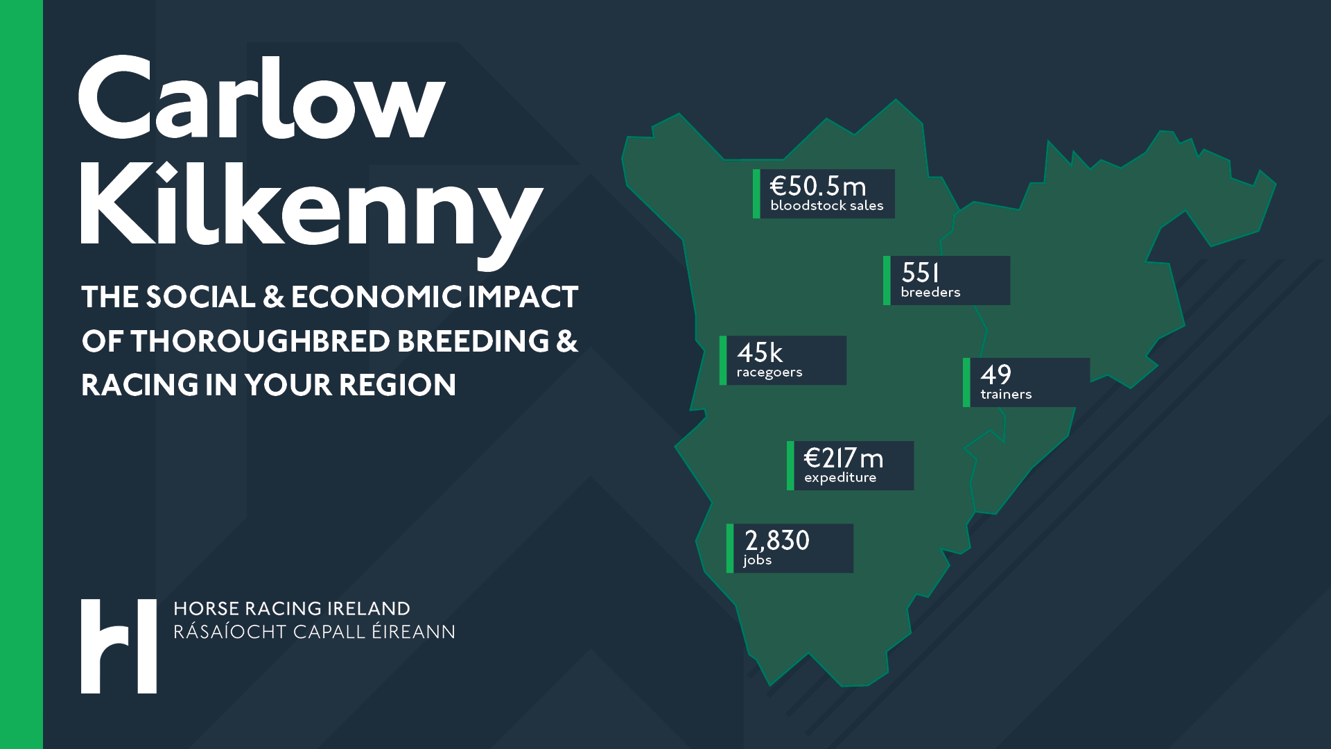 This section provides a specific overview of the significant contribution of horse racing to the Counties of Carlow and Kilkenny, where the industry generates €217 million in expenditure and provides 2,830 jobs. 45,000 racegoers attended Gowran Park racecourse in 2023. The region is home to 551 breeders and 49 trainers, and generated bloodstock sales of €50.5 million.