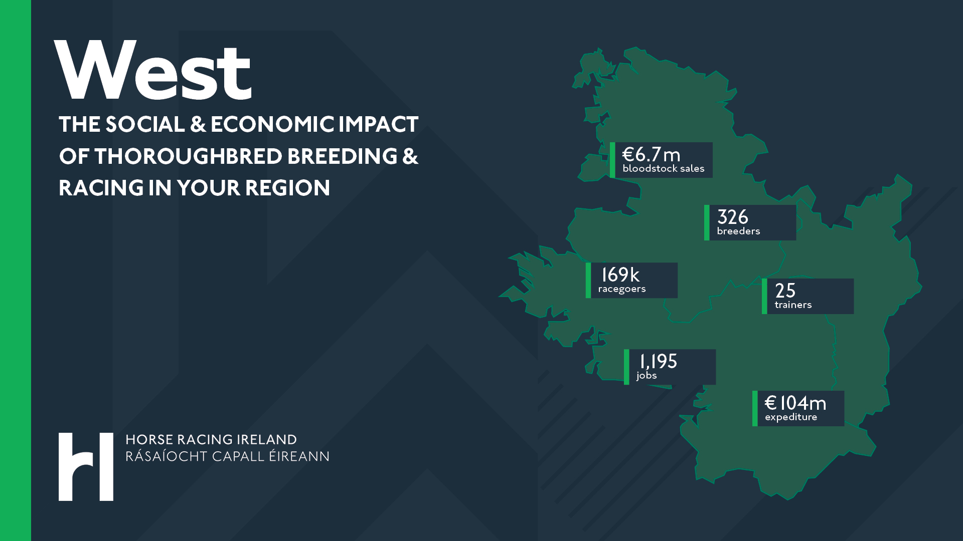 This section provides a specific overview of the significant contribution of horse racing to the Counties of Galway, Mayo and Roscommon where the industry generates €104 million in expenditure and provides 1,195 jobs. 169,000 racegoers attended Ballinrobe, Galway and Roscommon racecourses, which are among the most popular and well attended in the country and part of the social fabric of their communities. The region is also home to 326 breeders and 25 trainers.
